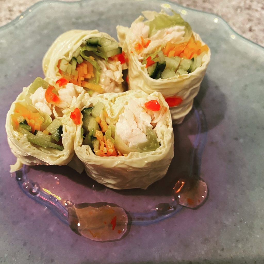 【釜揚げ湯葉レシピ】釜揚げ湯葉の生春巻き~ナンプラー&チリソース添え