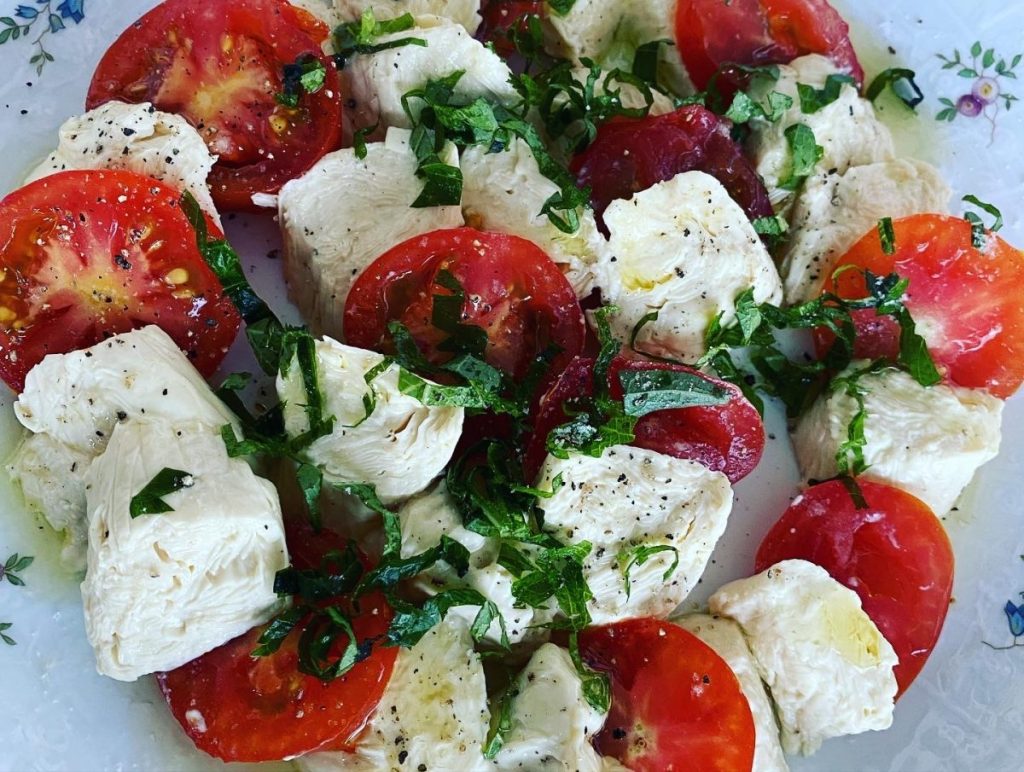 お刺身湯葉をカットして、トマトと交互に並べた上から、塩コショウにオリーブオイル。香味野菜にバジルや大葉を振ったら、ヘルシーカルパッチョの出来上がり。カットして塩コショウオリーブオイルだけなので、簡単・お手軽・手抜きメニューです。なのに、「おー今日は豪華なごはん」と思ってもらえるお得なメニューです❣