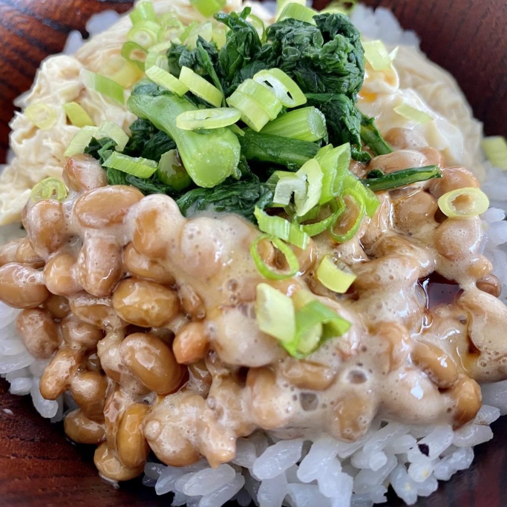 納豆ととろり湯葉を組み合わせた大豆イソフラボンたっぷりの、親子丼ならぬ姉妹丼。最近、ブログをアップするために湯葉料理をたくさん作って食べているので、お肌の調子がよい気がします(あくまで主観ですが・・・)。
